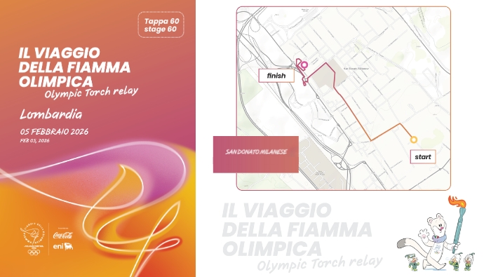 Giovedì 5 febbraio la Fiamma olimpica transiterà lungo le strade di San Donato. Il tratto cittadino percorso dal simbolo dei Giochi anticiperà la partenza da via Europa (all'altezza del Multisala Troisi) alle ore 12.23.